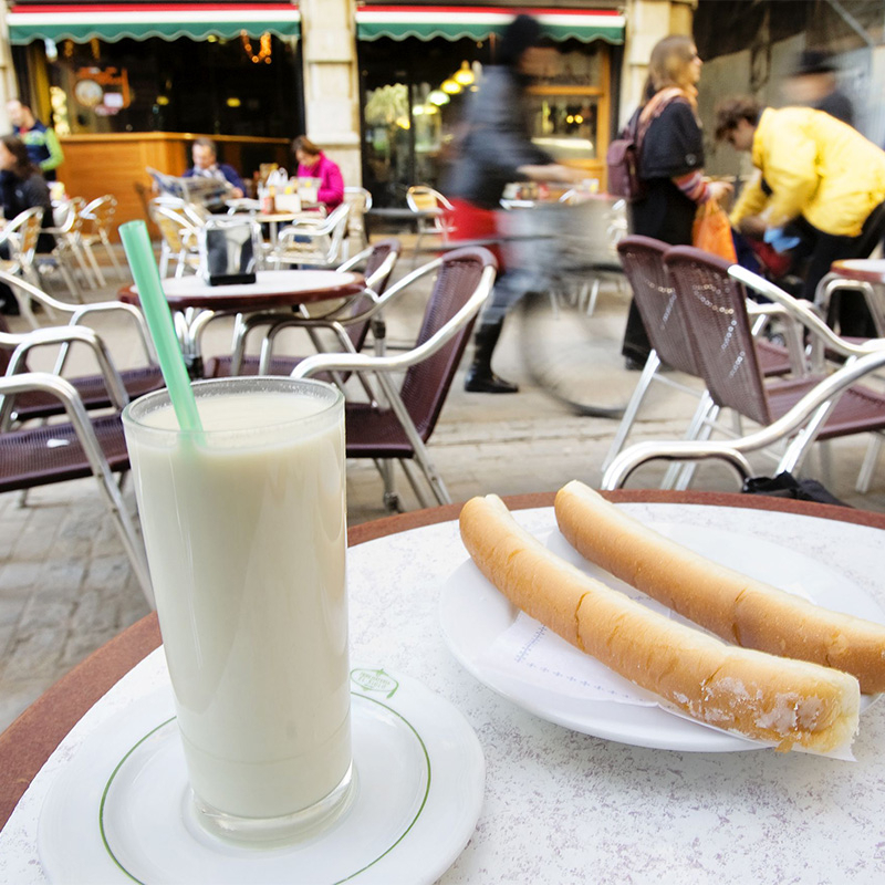First, we begin our tapas brunch in Valencia at exactly the peak time for many cafés, and we start our peregrination with a unique, and most typical, local breakfast. To continue the adventure, we will discover Valencia's old stores and taste their fresh products, visit the emblematic central market (Mercado Central) where we will eat Iberian ham, olives, cheese and wine from the region. Then, we will go to a local bar where we will sample an authentic almuerzo/brunch as the Valencianos do: the iconic Esmorzaret! To finish up after these very different experiences we end up with a must-do local tradition, the delicious “Orchata”!